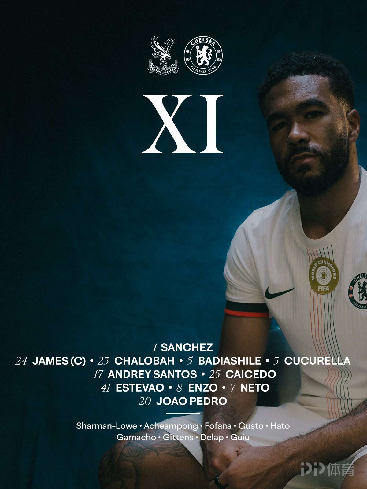• 切尔西客战水晶宫:埃斯特旺领衔,佩德罗、詹姆斯出战